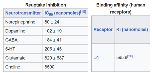 Finally, it is a weak MAOA inhibitor which decreases the breakdown of dopamine. This is obviously a plus when it comes to treating ADHD, depression and anhedonia.