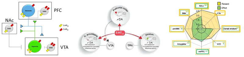 Functionally, the nucleus accumbens has a significant role in reward cognition, including reinforcement of rewarding stimuli and substance use disorder. It integrates dopaminergic inputs from the ventral tegmental area (VTA) and glutamatergic inputs from various regions of the brain to influence motor functions related to reward-related behavior. When activated, it promotes positive reinforcement and reward-related behaviors, but when dysfunctional, it is implicated in the pathology of several addictive and psychiatric disorders.