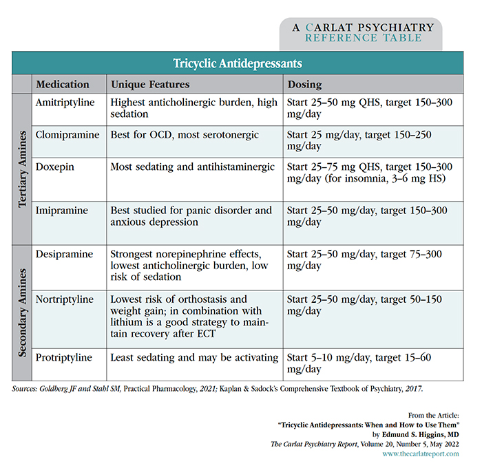 For OCD/anxiety disorders: clomipramine > amitriptyline = imipramine > amoxapine = doxepin > trimipramine > the others.